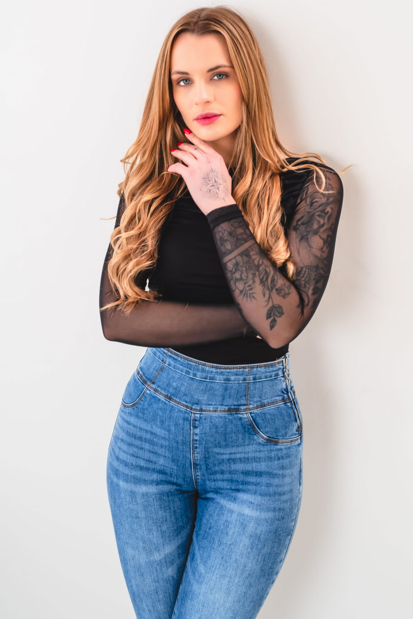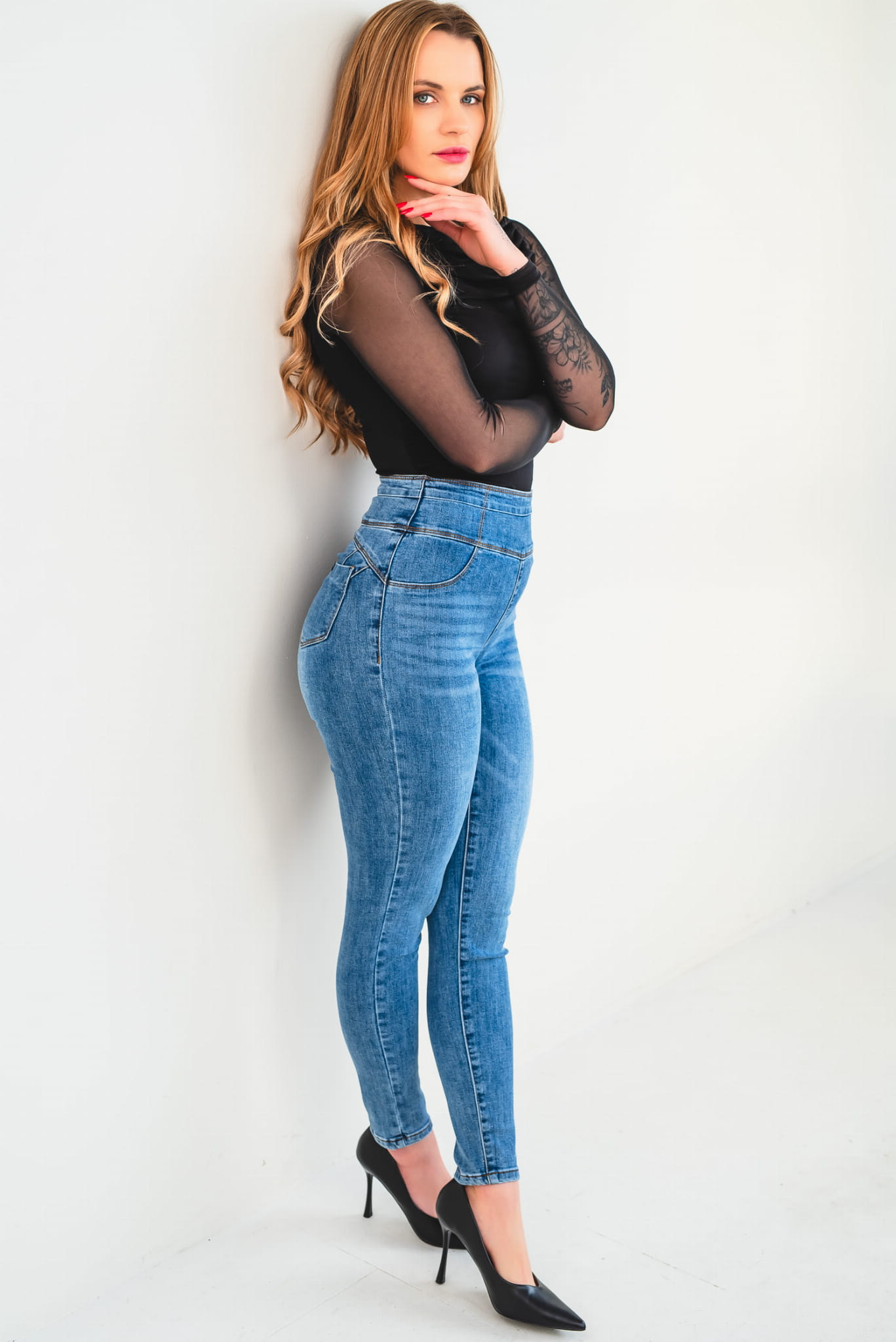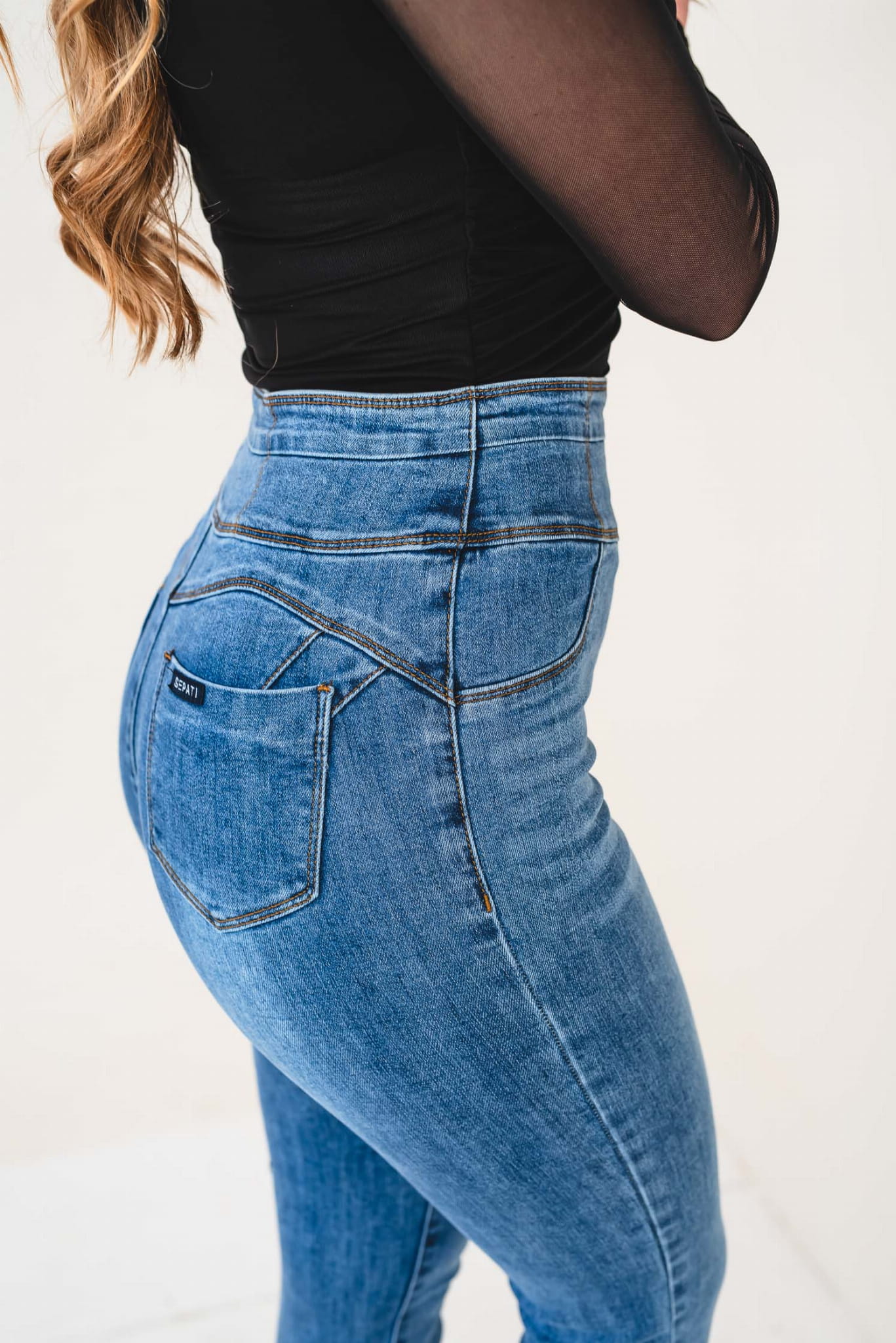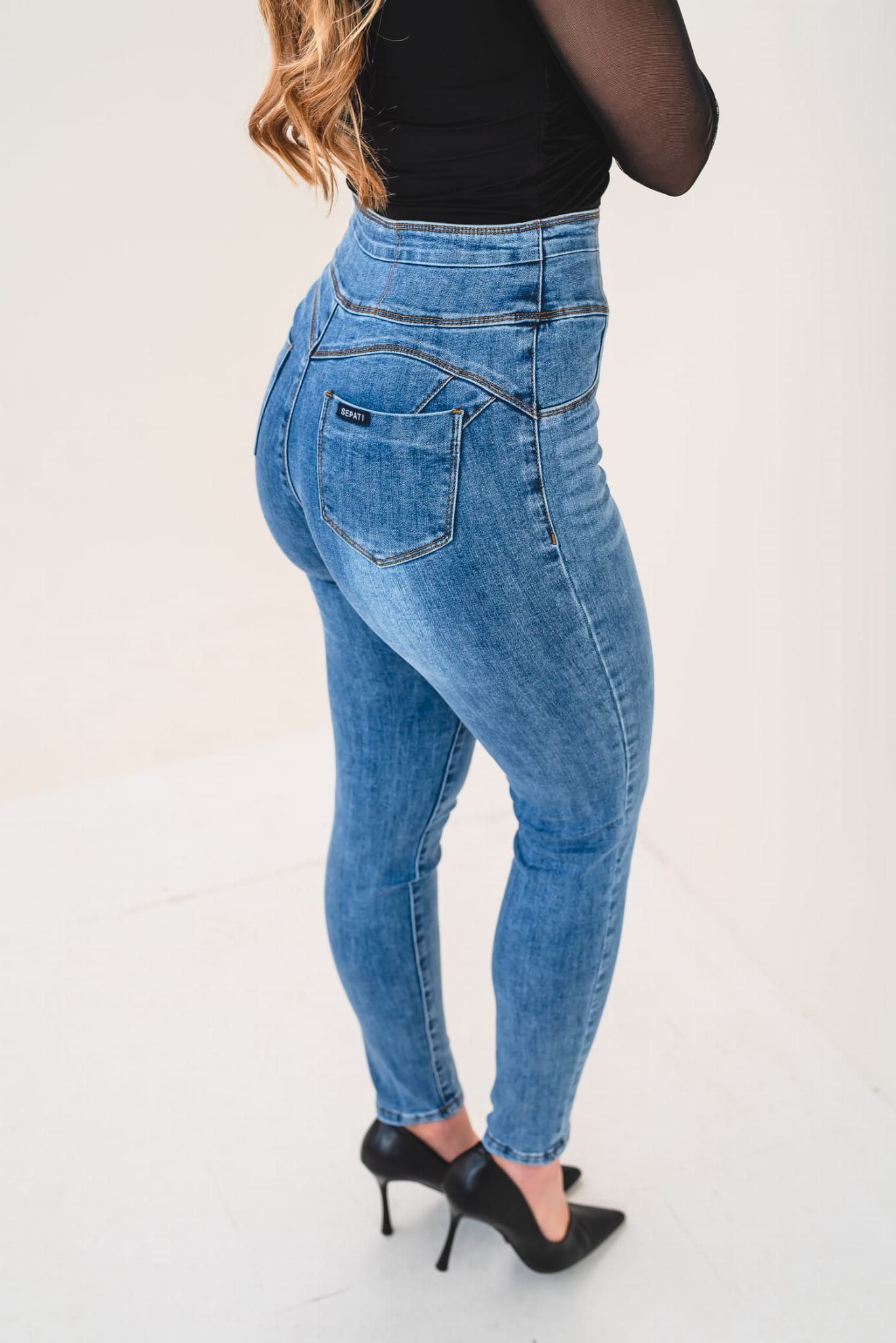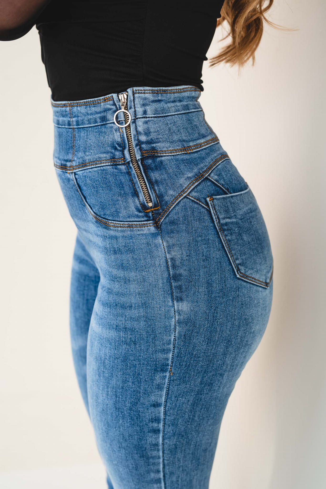 - Materiał: elastyczny denim premium – trwały, wygodny i elastyczny