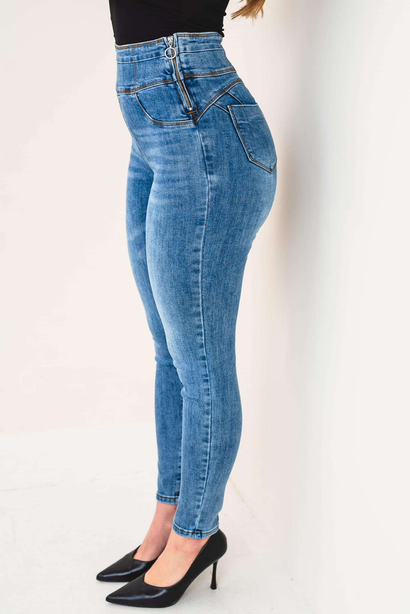 X285 Jeansowe spodnie skinny SEPATI – modelujące rurki push up z wysokim stanem wyszczuplające talię, zamek z boku (S-XL)